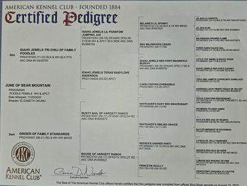 June is AKC registered Poodle. She is 18" tall and 20 lbs. June is playful and smart. She loves playing with kids and puppies.